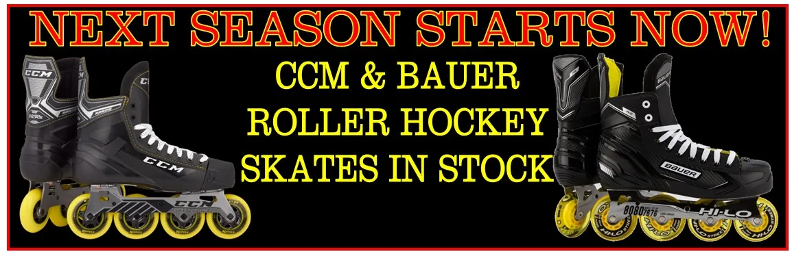 As the on-ice season winds down, the off-ice season begins. The perfect place to start is with a new pair of CCM or Bauer Roller Hockey Skates. Projections show that these will be in very short supply again this spring and summer so don't delay! Next season starts NOW!