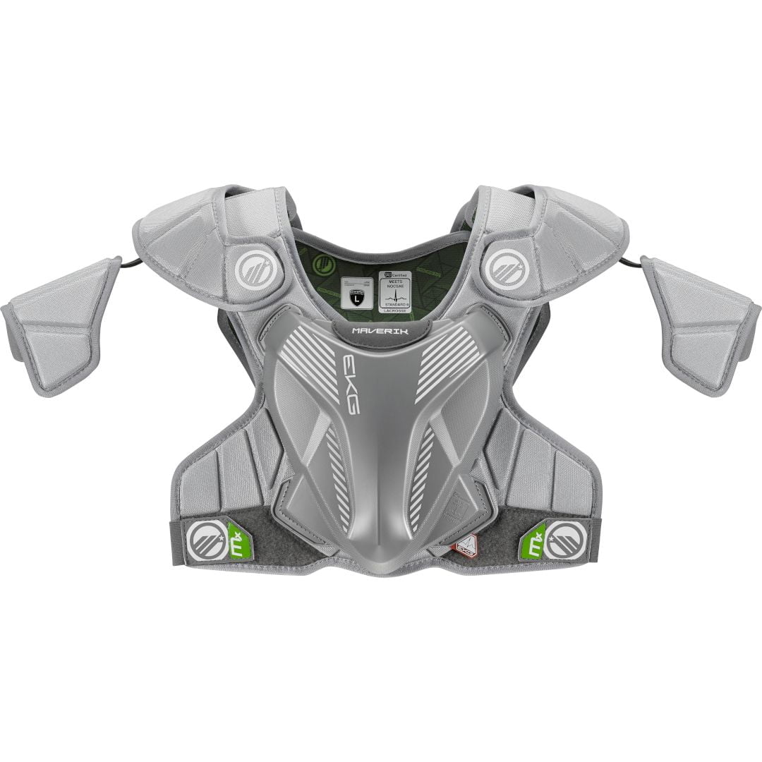 The Maverik MX EKG Lacrosse Shoulder Pads (2025) are engineered utilizing the same principles of fit and protection that have made Maverik pads the preference of elite athletes. The MX will help new players reach their highest potential. Featuring Maverik’s EXTERNAL KARDIAC GUARD (EKG), the revolutionary pad meets the new NOCSAE performance standard ND200 to help address commotio cordis.