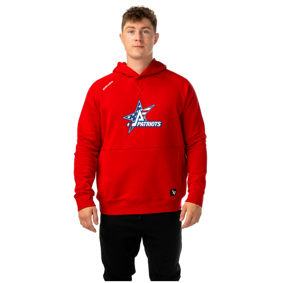 Bauer Ultimate hoodie is perfect by itself and perfect as a layer alongside the Bauer Supreme Lightweight or Midweight jacket. In Navy & Red , Youth and Adult sizes. With Patriots logo