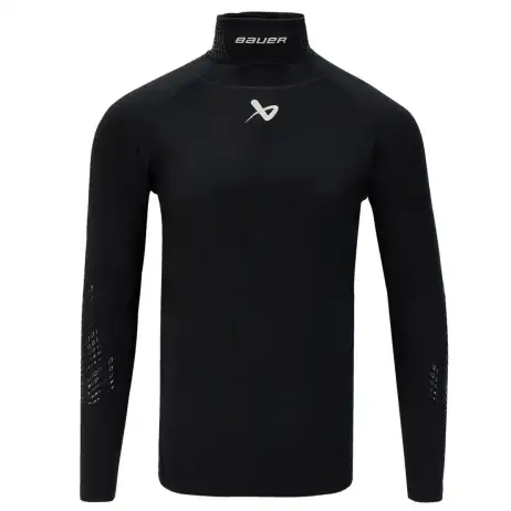 New for 2022-2023, the Bauer Neck Protector Long Sleeve Shirt allows you to play hockey with confidence knowing you’re well protected. This certified, adjustable, cut-resistant integrated neck guard provides the ultimate in protection through DuPont™ KEVLAR® fibers.