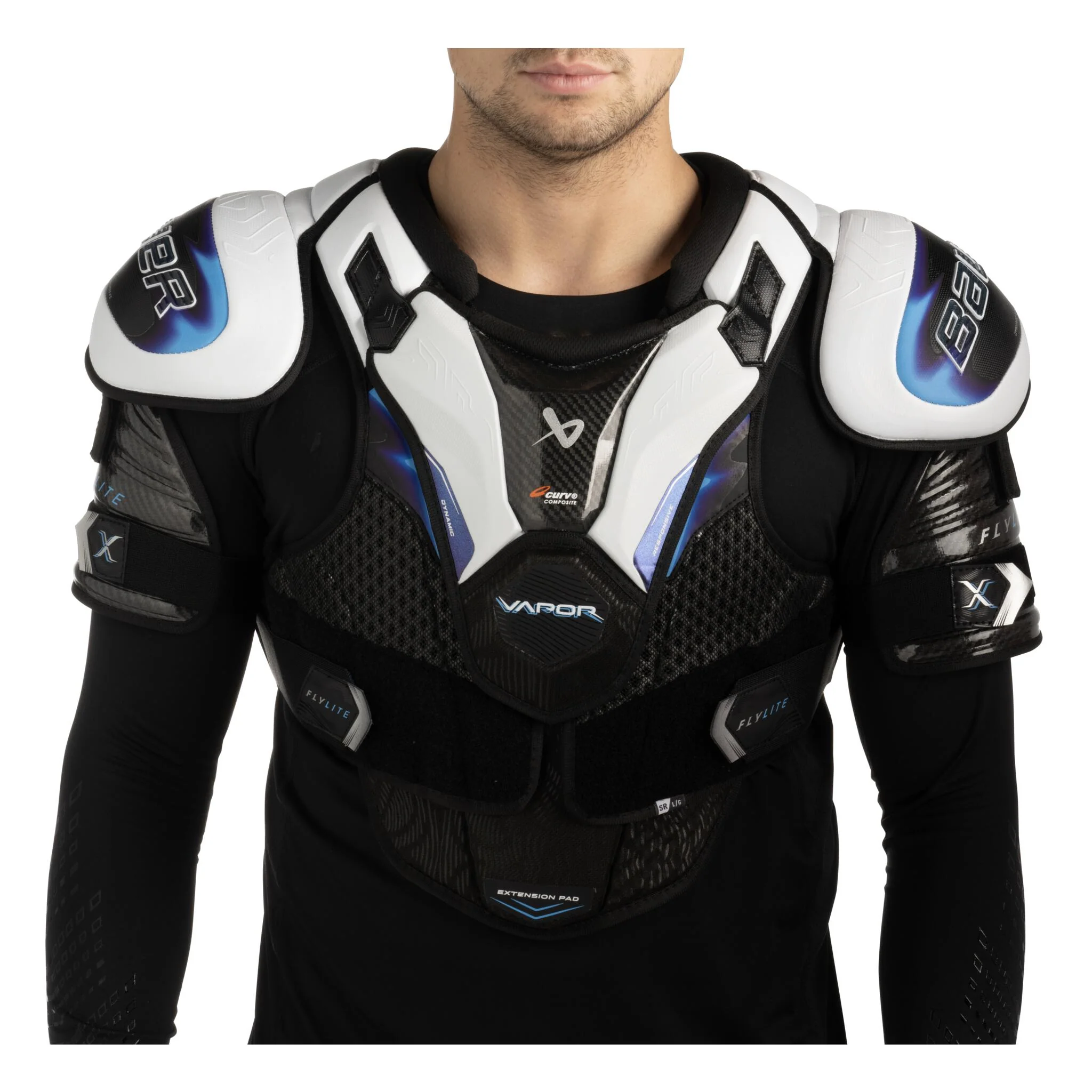 The Bauer Vapor Flylite Intermediate Hockey Shoulder Pads are designed to feel light as air while keeping you protected. Flexible materials sit close to your body for increased freedom of motion. The elite-strength foams and composites in the biceps and shoulders are designed to help you brush off impacts.